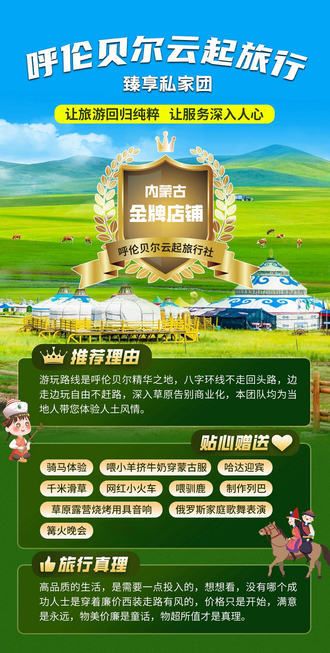3.接待驢友10000人做到“0”投訴、眾多好評口碑宣傳,我們專注戶外純玩原生態(tài)體驗式旅行、行程為八字環(huán)線不走回頭路避免重復(fù)路程,會讓您的呼倫貝爾之旅不虛此行