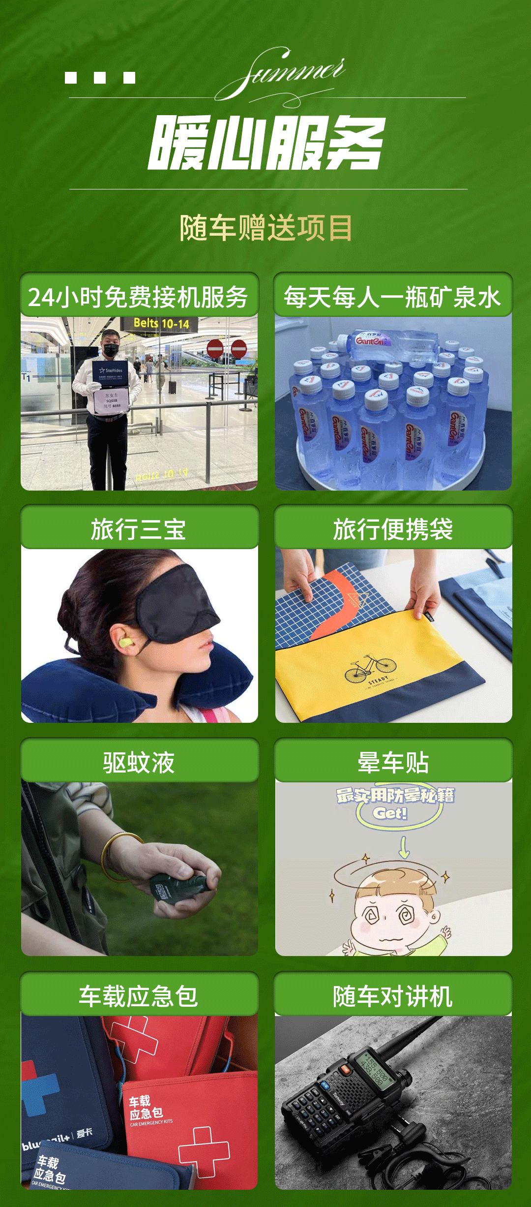 F)自助項(xiàng)目:免費(fèi)接機(jī)/接火車(chē)(行程當(dāng)天結(jié)束不返程無(wú)免費(fèi)送機(jī)/火車(chē),司機(jī)貼心管家式服務(wù)幫忙辦理購(gòu)買(mǎi)門(mén)票以及入住酒店等工作